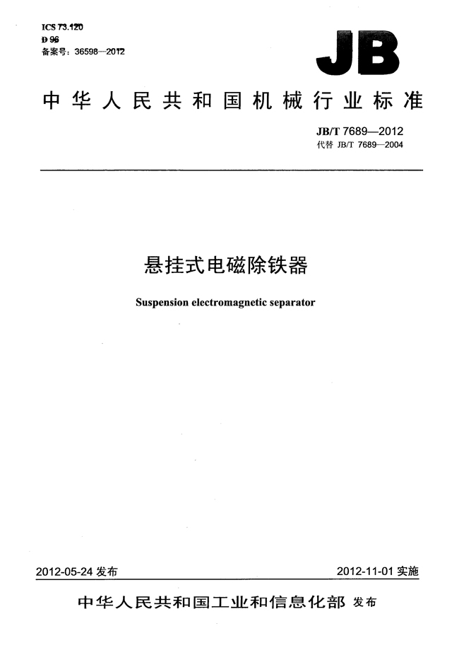 由公司參加修訂的《懸掛式電磁除鐵器》國家機械行業標準(JB/T7689-2012),經國家工信部發布后已于2012年11月1日開始實施。該標準代替JB/T7689-2004《懸掛式電磁除鐵器》,增加了對強迫油冷式和蒸發冷卻式電磁除鐵器等方面的要求,體現了行業的技術進步成果和客戶的新需求。