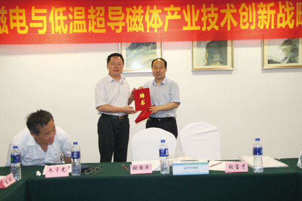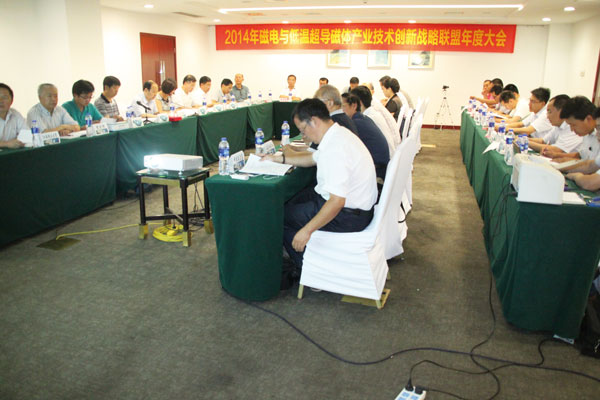 7月9日,值此全國冶金礦業科技大會召開之際,2014磁電與低溫超導磁體應用產業技術創新戰略聯盟年度工作會在安徽合肥召開。來自聯盟單位的各位領導和專家及特聘專家代表參加了會議。分別有:中科院高能物理研究所超導磁體工程中心副主任、高級工程師趙玲,東北大學高鵬博士,武漢理工大學副院長彭會清教授,江西理工大學研究生院院長黃萬撫教授,鞍鋼集團礦業公司科技部主任徐連生高工,中鋼集團馬鞍山礦山研究院科技管理部部長常前發教授,河北鋼鐵集團礦業有限公司副總經理、設計院院長南世卿博士,蘇州中材非金屬礦工業設計研究院有限公司沈君麟教授級高工、河北聯合大學礦業工程學院選礦系主任趙禮兵博士,山東科技大學副院長呂憲俊教授,中國地質科學院鄭州礦產綜合利用研究所科技處副處長張成強研究員,山東耐火材料集團有限公司潘東華副總經理,山東華聯礦業股份有限公司總工劉全軒高工,中國煤炭工業秦皇島進出口有限公司方海濱高工,安徽雷克環保科技股份有限公司丁元常務副總,濰坊新力超導有限公司技術中心主任張義廷高工等。聯盟特邀專家代表中南大學孫仲元教授,五礦集團邯邢礦業岳潤芳總工、楊計軍部長,以及唐山陸凱科技李中昆經理和來自聯盟單位的其他代表專家參加了會議。