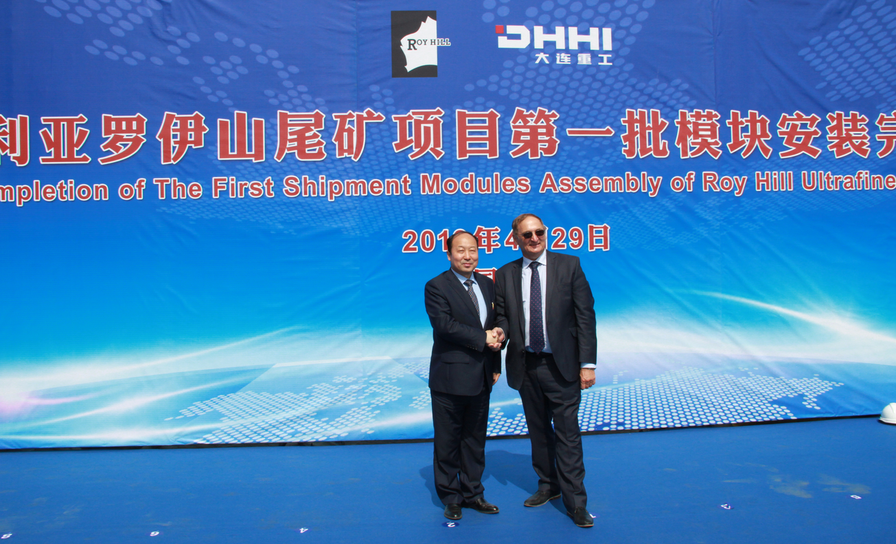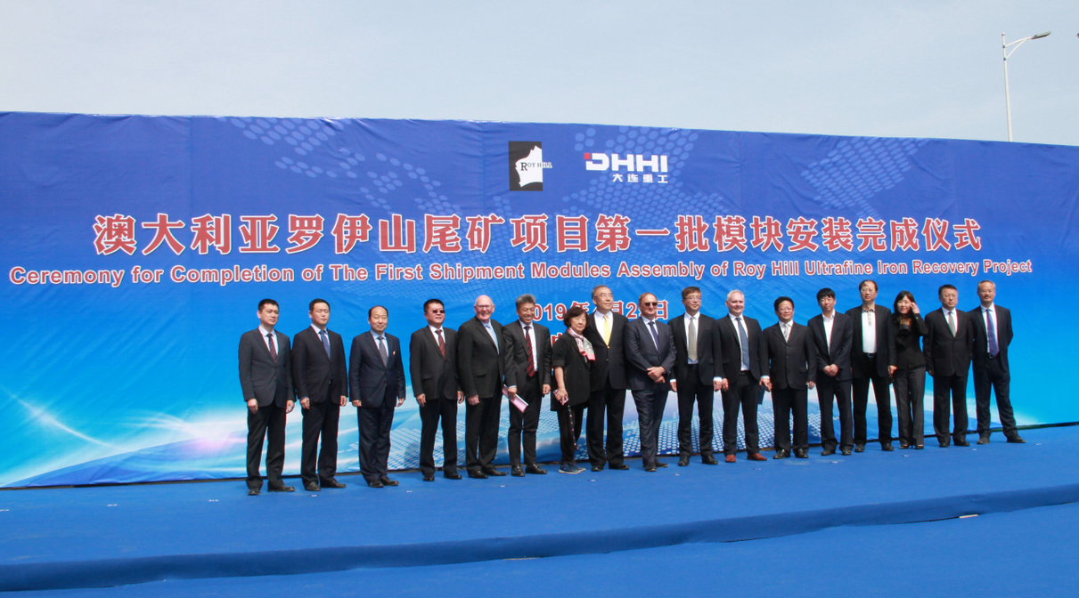 2019年4月29日,澳大利亞羅伊山尾礦項目第一批模塊安裝完成儀式在大連和尚島大組現場隆重舉行。大連華銳重工集團股份有限公司董事長叢紅、集團副董事長邵長南、總裁田長軍、羅伊山公司CEO Barry、項目總監PAUL、高級項目經理JIM,漢考克集團市場總監LINDA LAU以及BV監理公司、華特、海王、陸凱、威爾等供應商代表參加會議。山東華特磁電公司董事長兼總裁王兆連、高級副總裁劉梅、公司總工程師賈洪利、國際貿易部總經理劉建鵬應邀參加活動,代表華特出席儀式。會上BARRY先生代表羅伊山公司對項目的進展表示滿意,對供應商的產品質量和緊密合作給予了高度評價,并與華特現場工作人員合影留念。