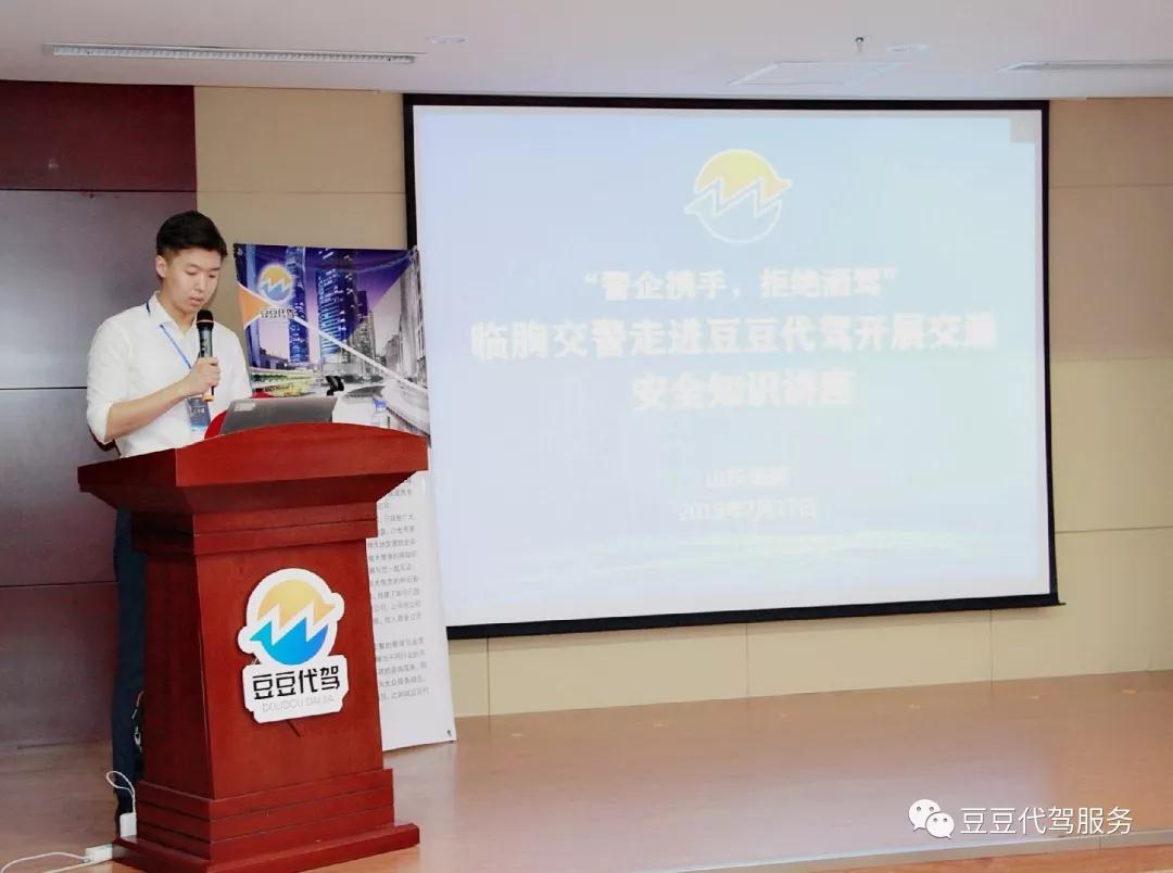 為深化文明交通切實(shí)提高轄區(qū)企業(yè)員工交通安全意識,預(yù)防和減少道路交通事故的發(fā)生,7月17日上午,豆豆代駕有幸邀請了交警大隊(duì)法制科科長張玲等警官到焱淼網(wǎng)絡(luò)科技總部為豆豆代駕分公司員工上了一堂生動的交通安全課。同時(shí),豆豆代駕也邀請了企業(yè)發(fā)展促進(jìn)會執(zhí)行會長吳維斌先生前來主持并講話。