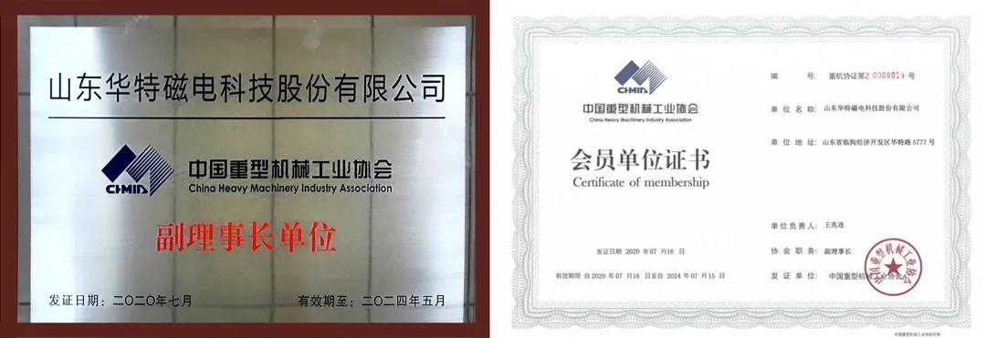 熱烈祝賀華特磁電當選為第八屆中國重型機械工業協會副理事長單位